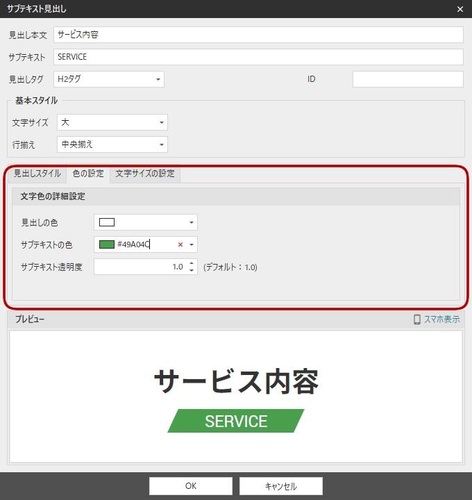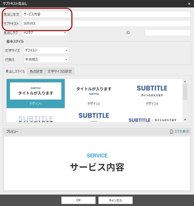 ここで、見出しのテキスト、サブタイトルのテキスト、スタイルなどを指定する事ができます。