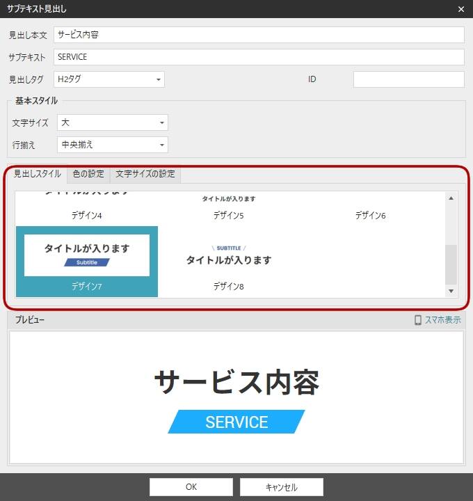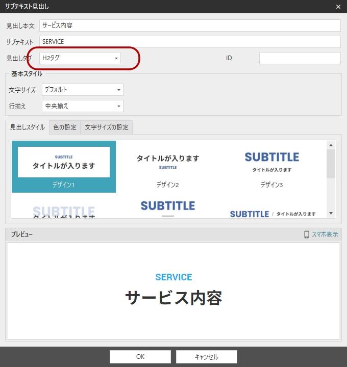 次に見出しの種類を指定します。H1~H6まで指定する事ができますが、全て同じデザインとなります。